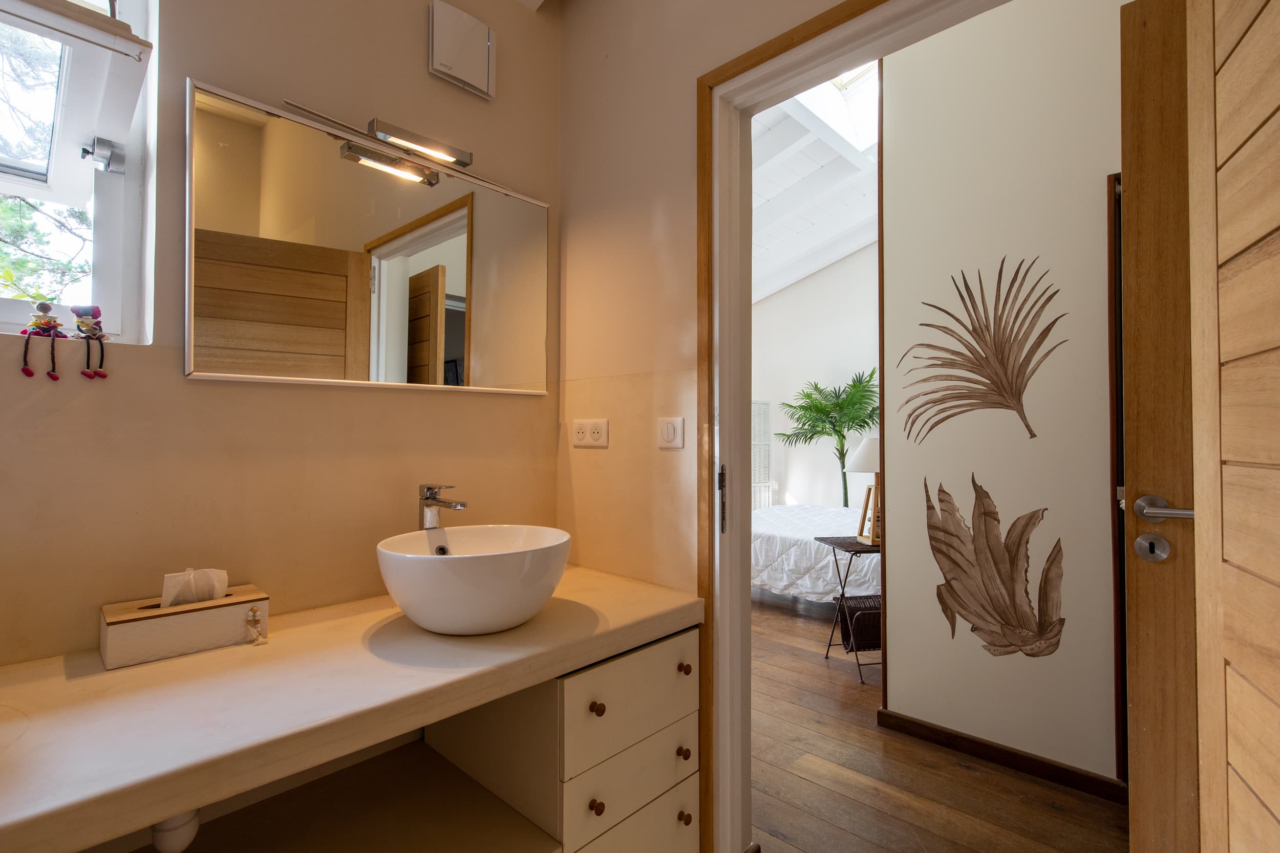 - Une suite parentale avec salle de bains (baignoire + douche), WC et dressing,