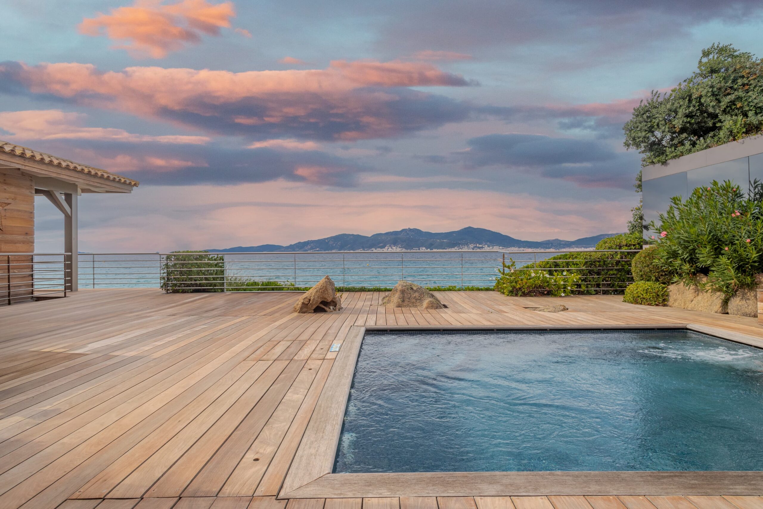 - Une suite indépendante, attenante à la terrasse avec piscine et vue mer, comprenant salle d’eau, WC séparés et espace bureau.