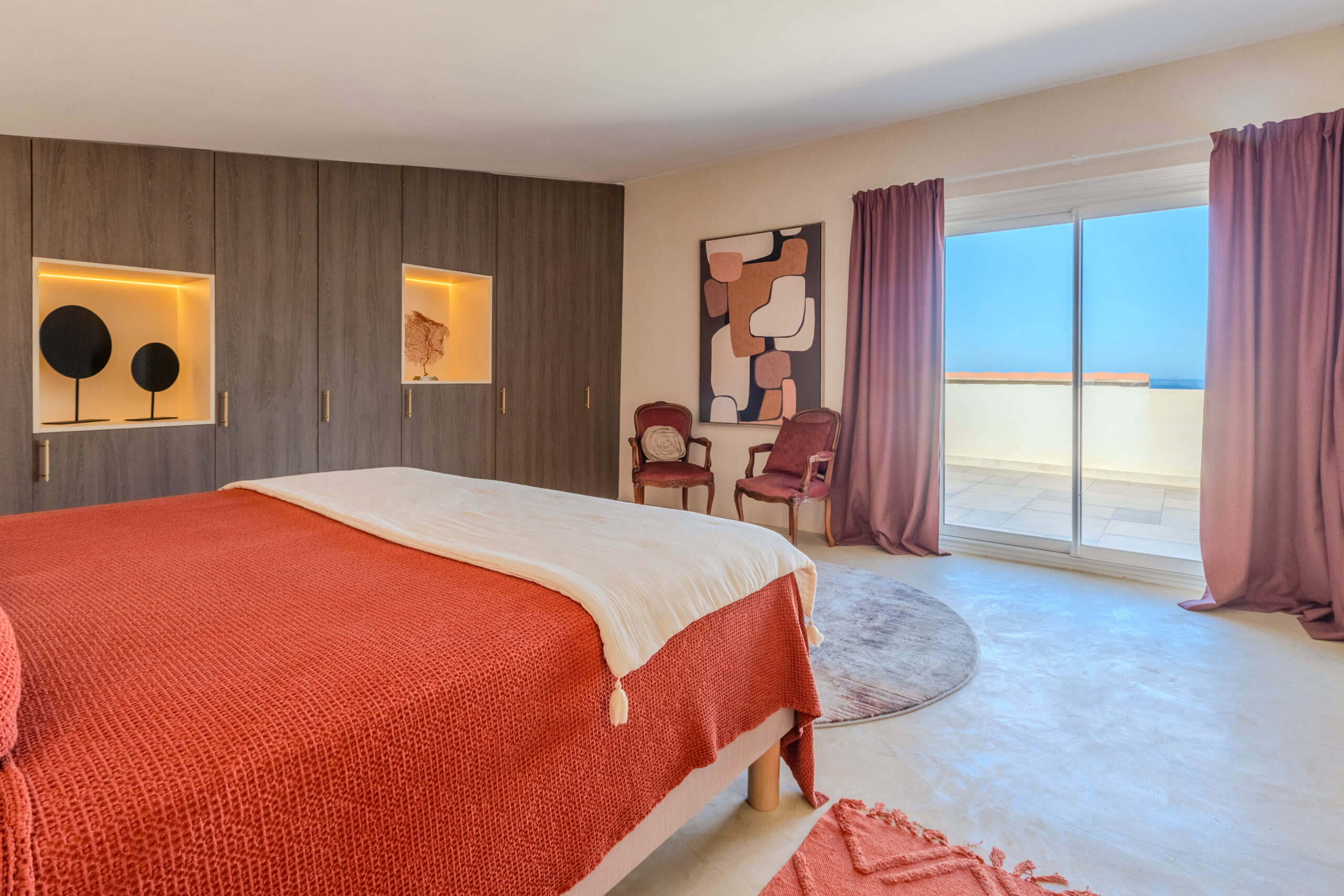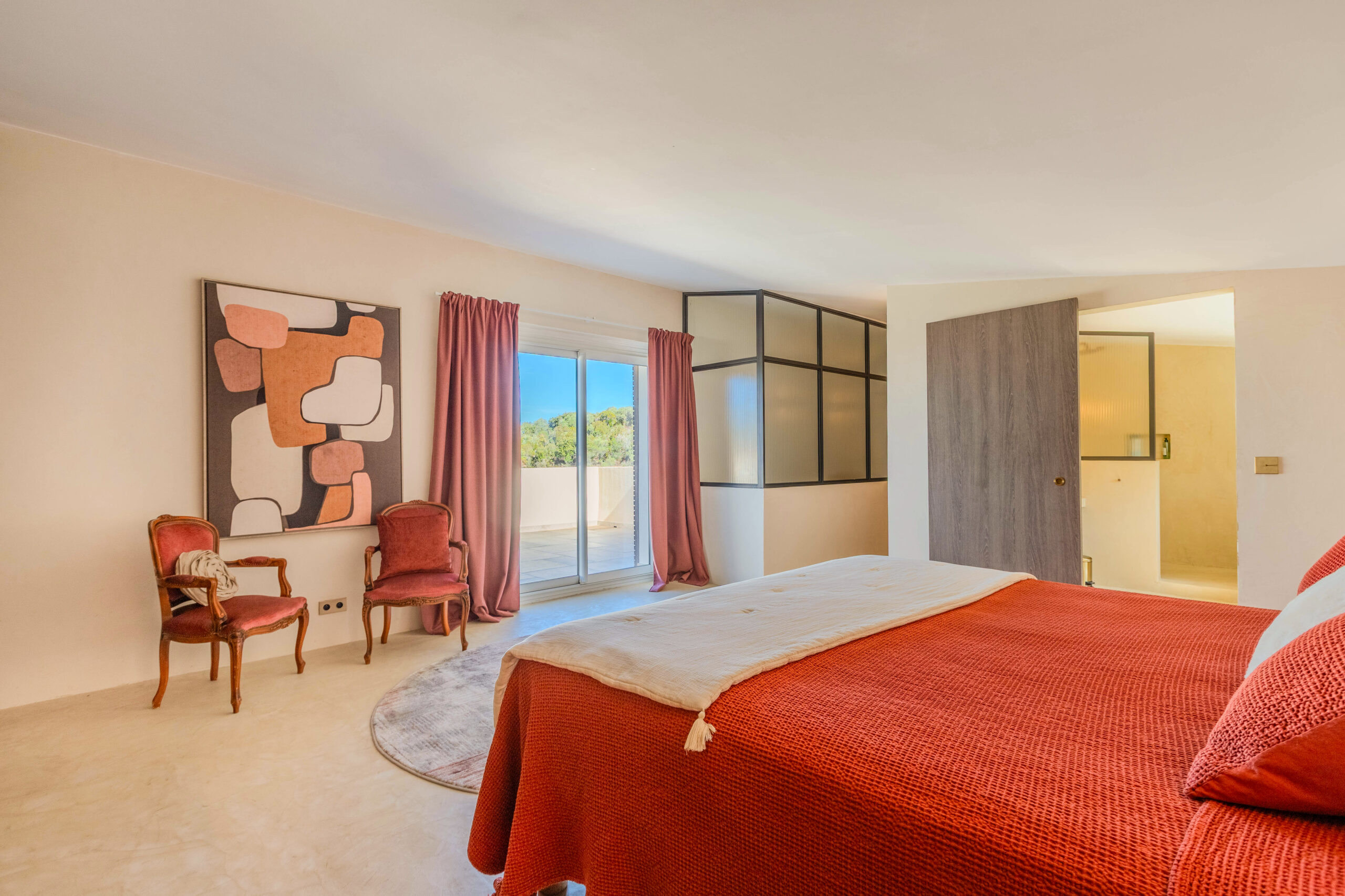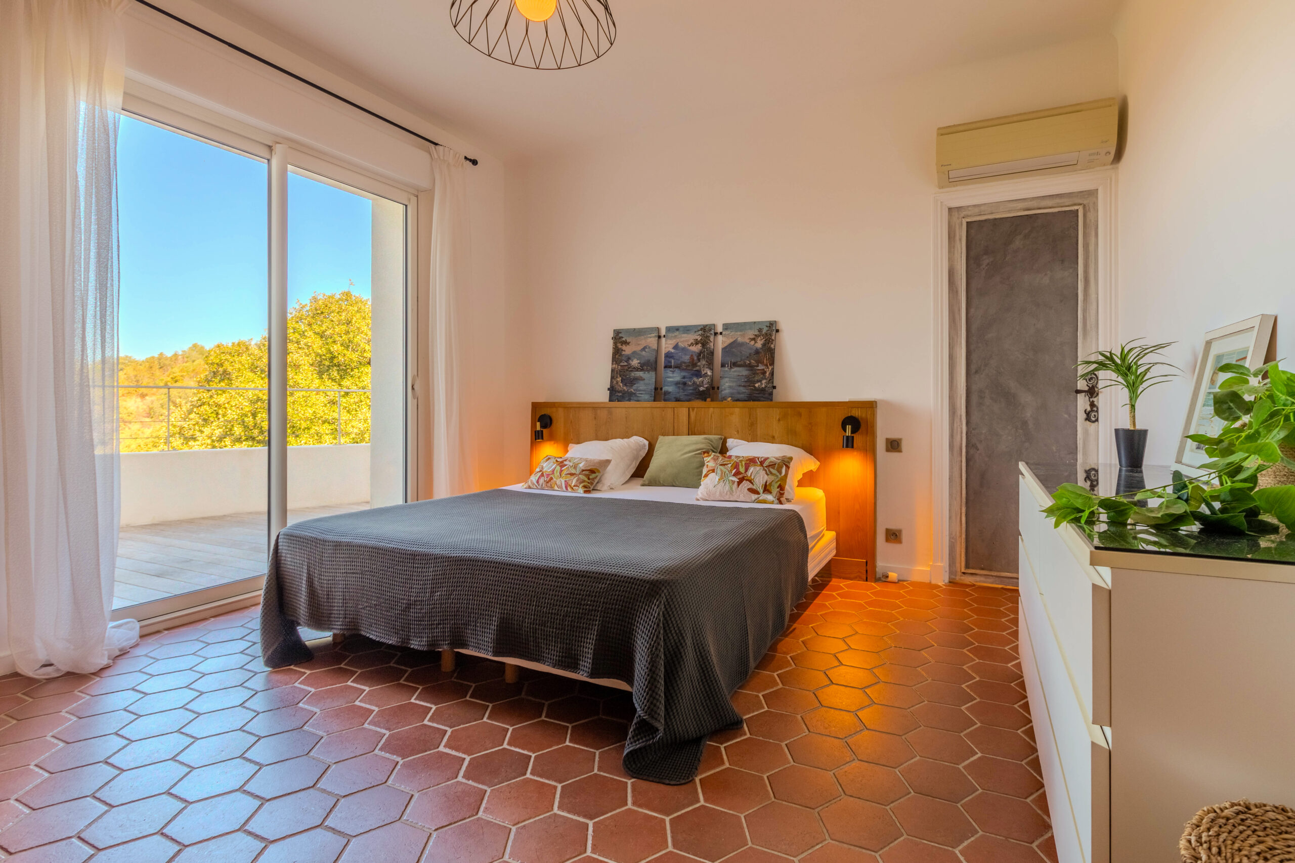 - Chambre de maître climatisée avec dressing, salle de bains, bureau et solarium privatif.