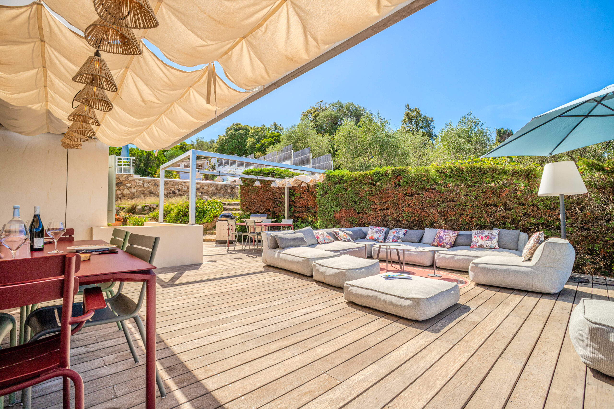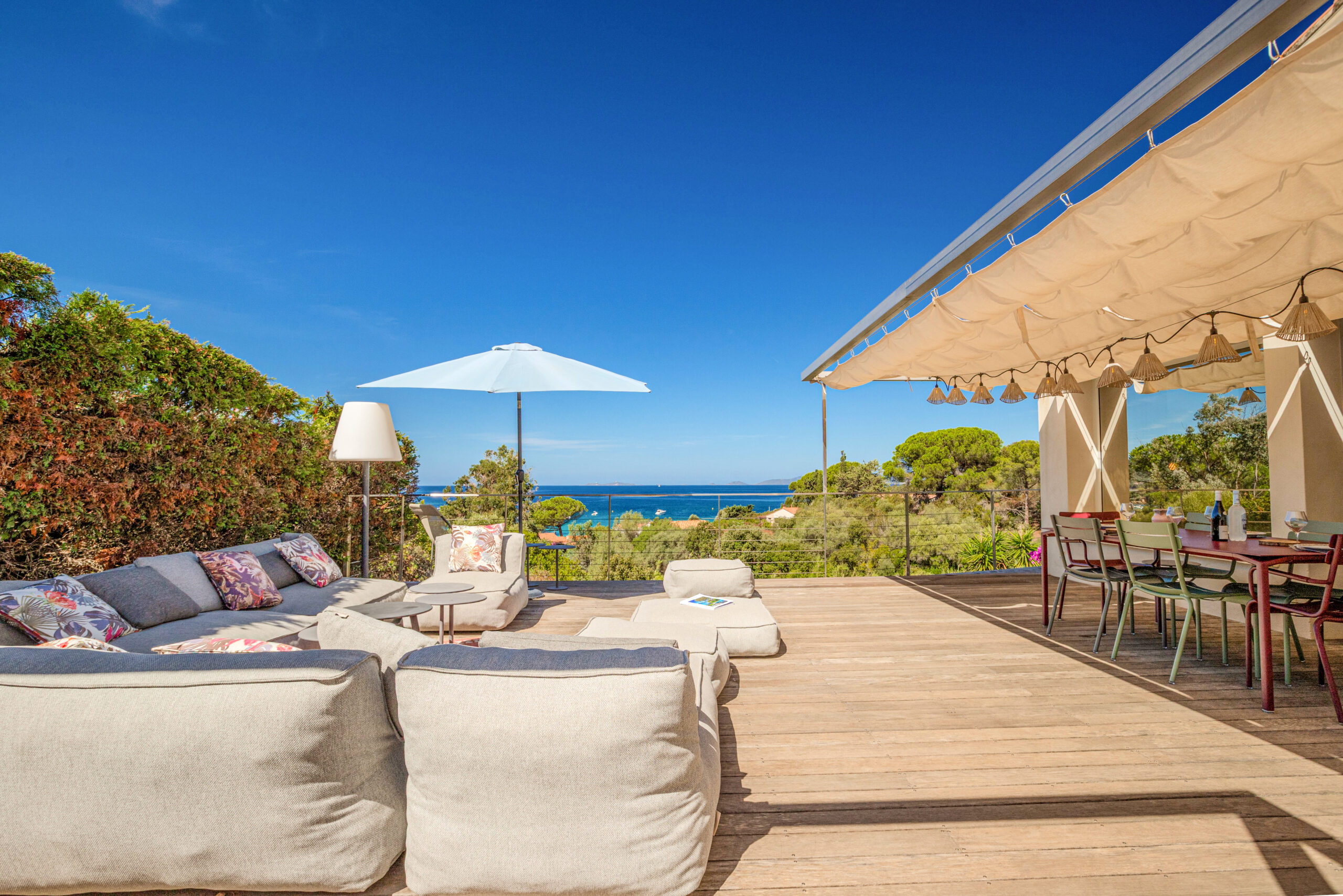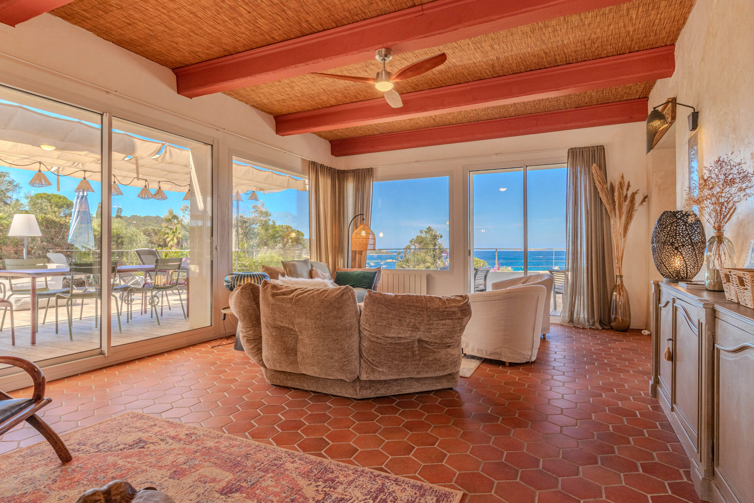 - L’ensemble des pièces à vivre donnant sur une vaste terrasse en teck.