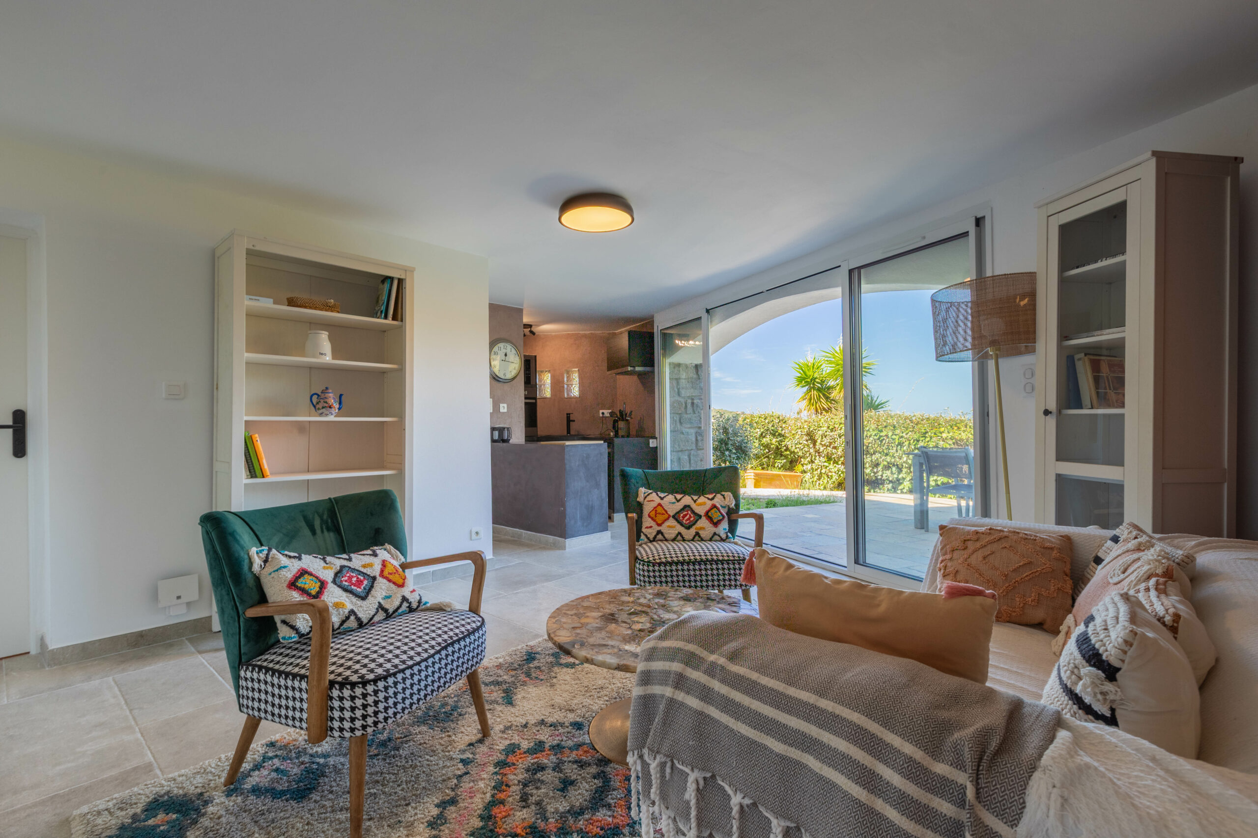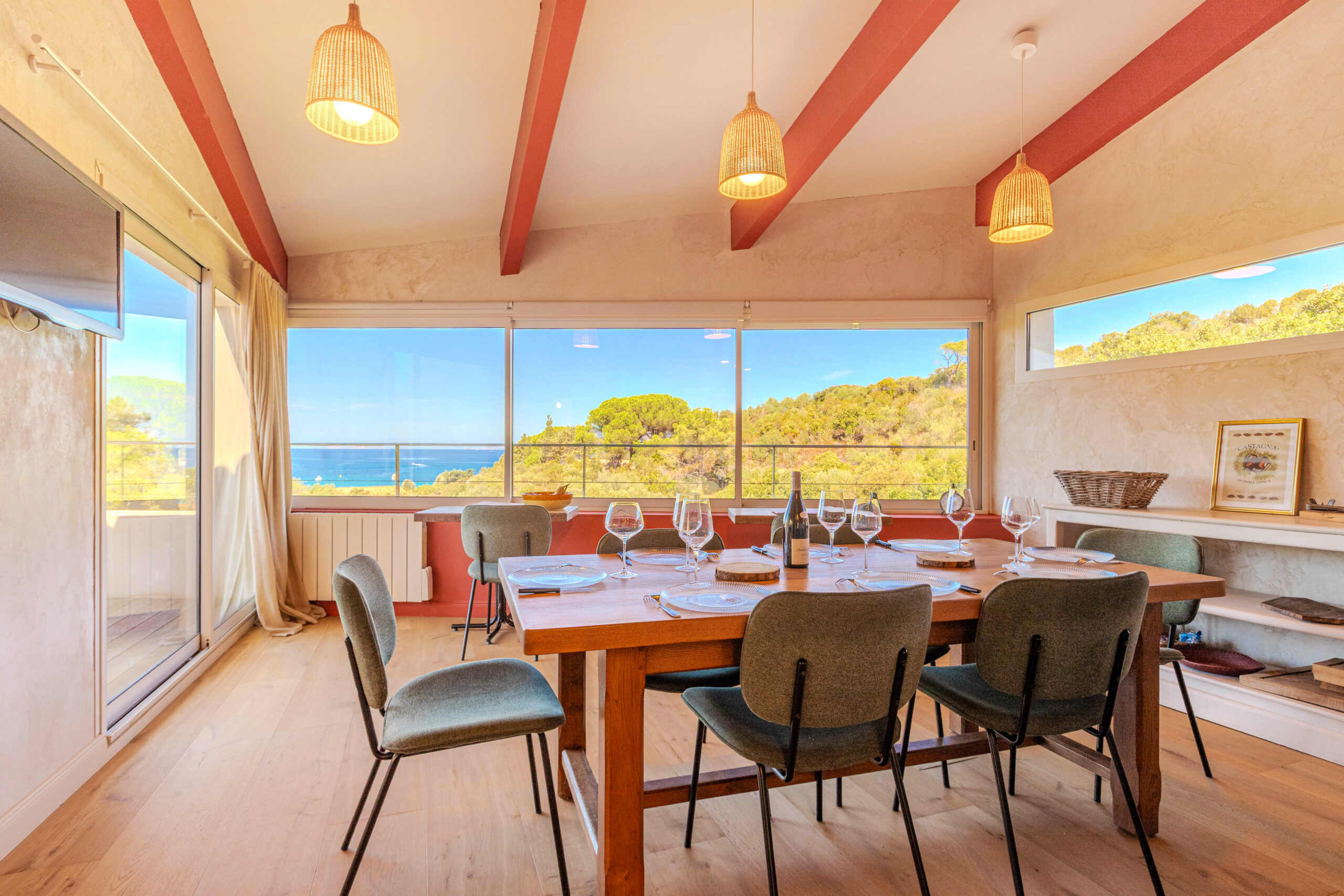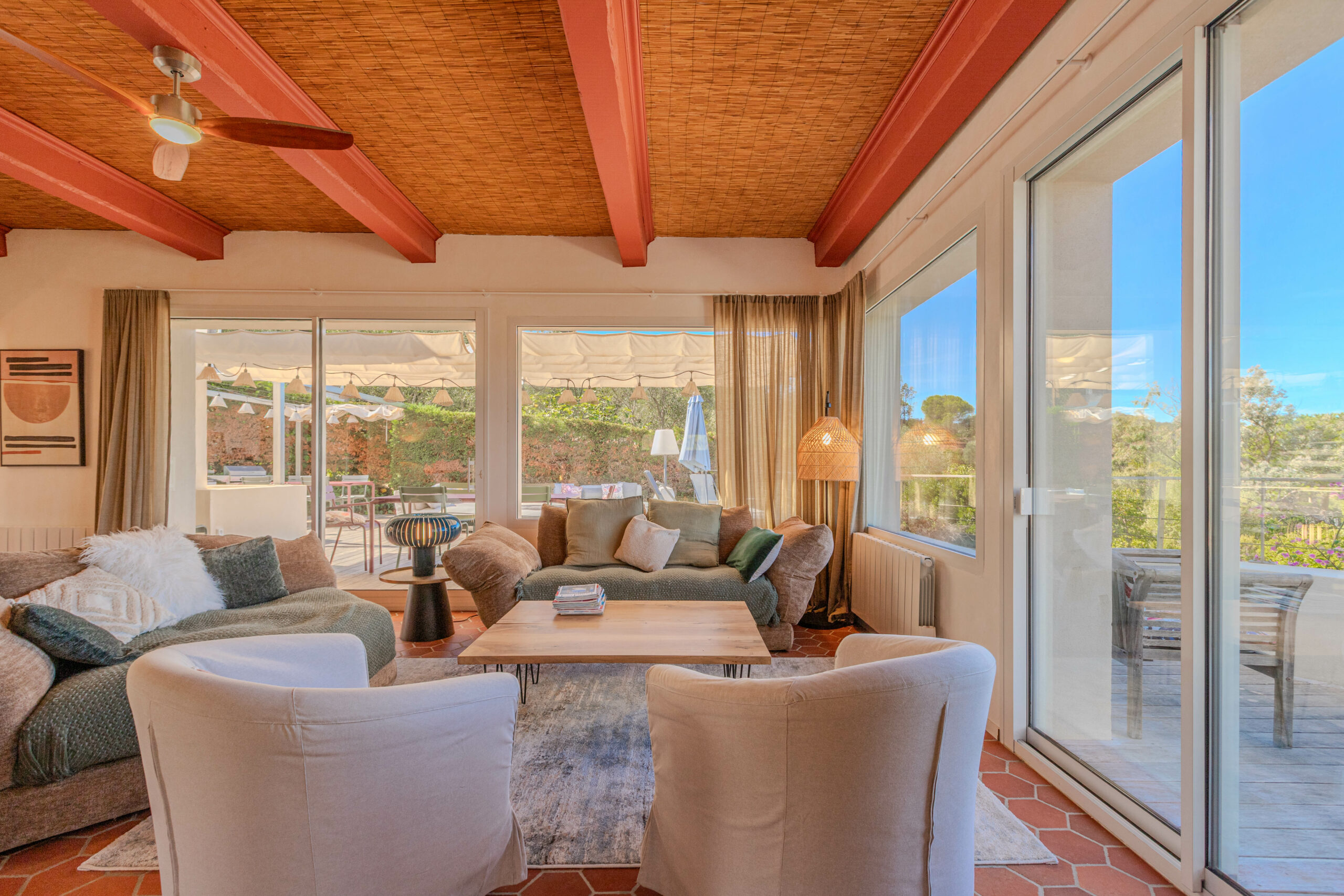 - L’ensemble des pièces à vivre donnant sur une vaste terrasse en teck.