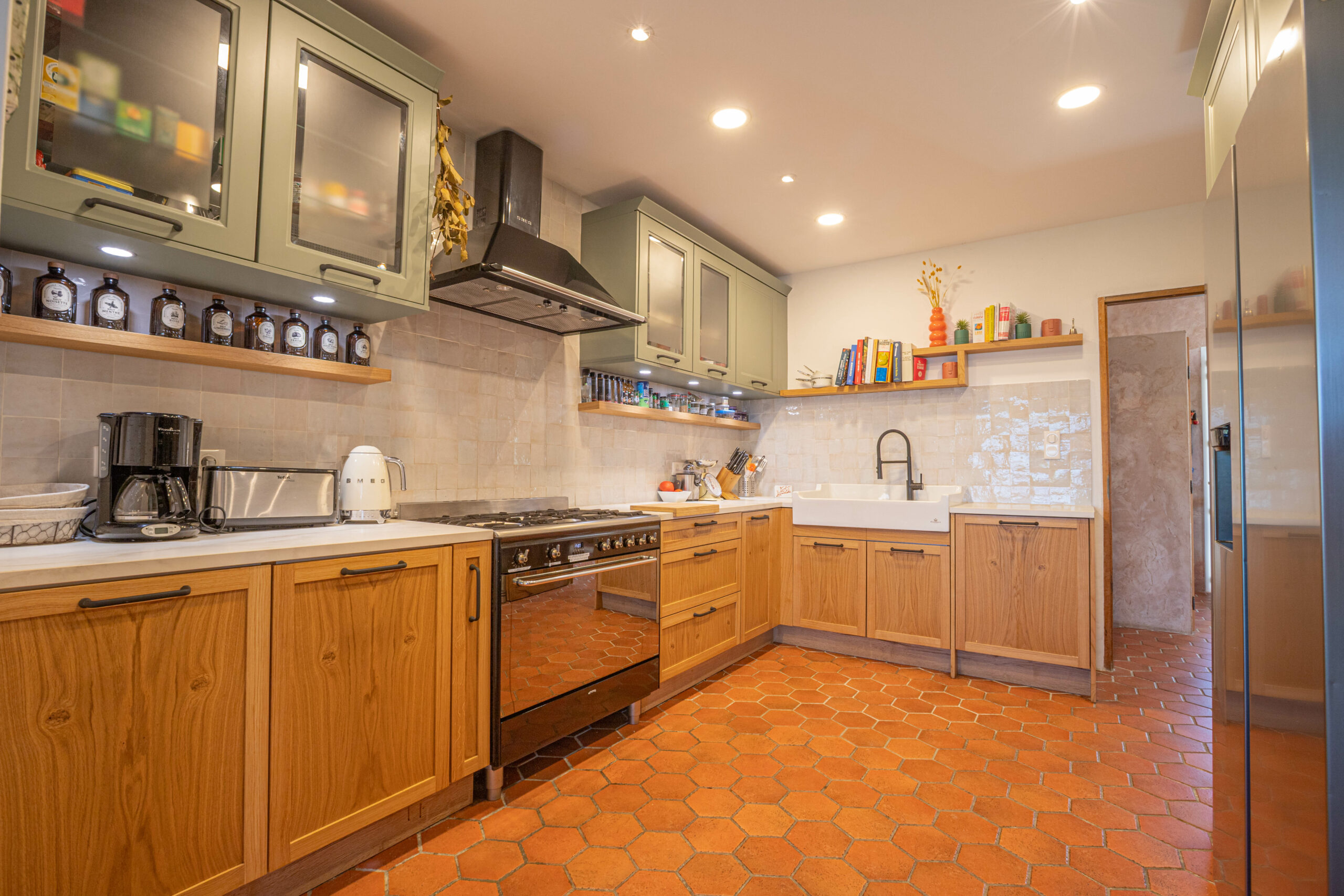 - Un vaste living avec salon cheminée, séjour, salle à manger, et cuisine indépendante entièrement équipée,