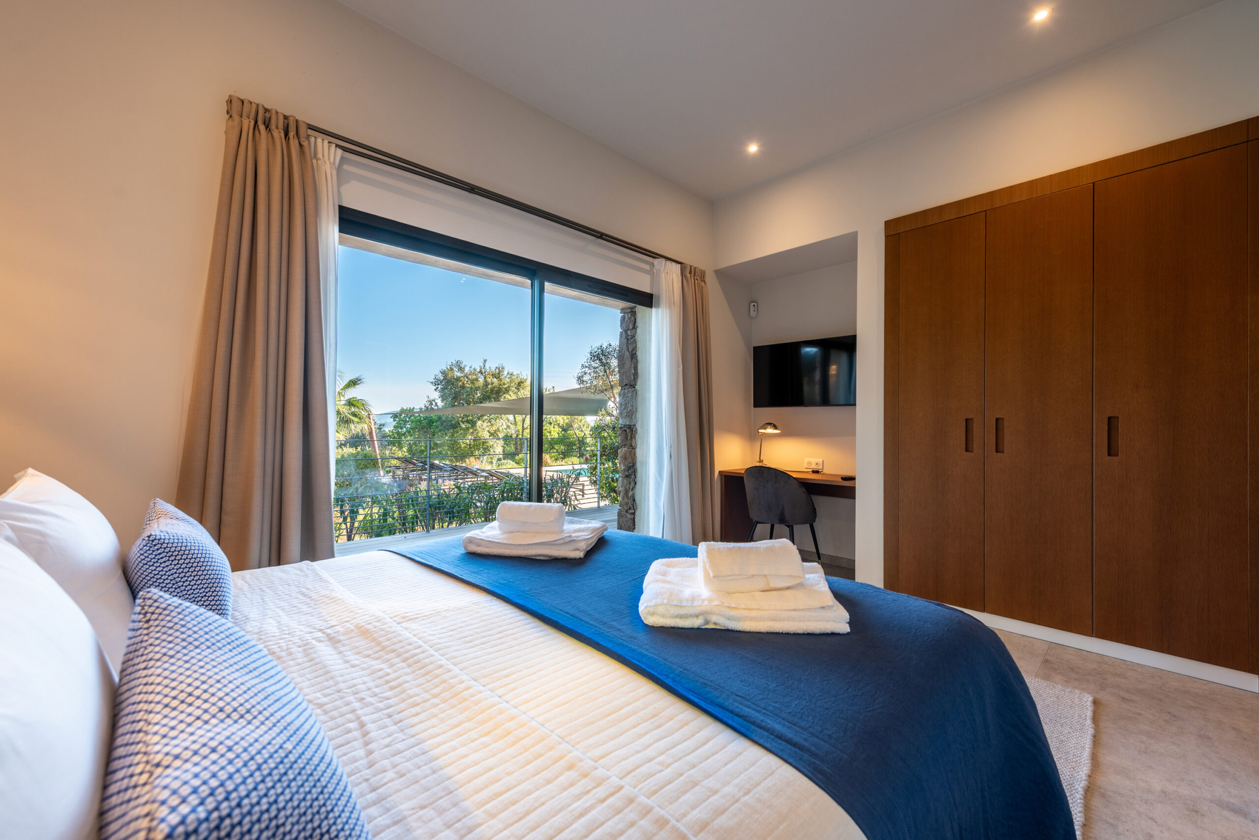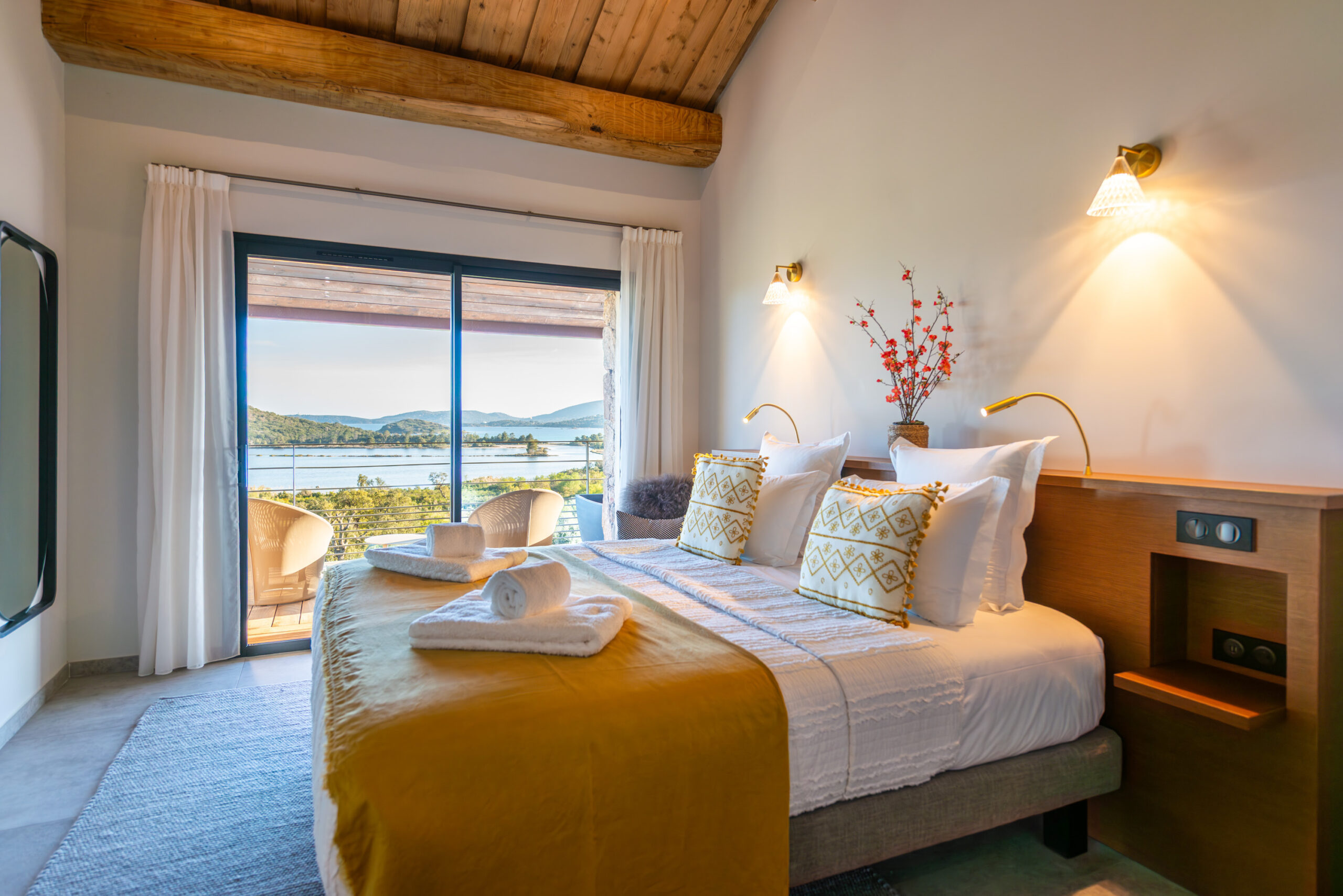 Entre mer et maquis, à quelques pas de la plage de Saint-Cyprien, elle offre une expérience à la fois élégante, confortable et profondément ancrée dans l’art de vivre corse.